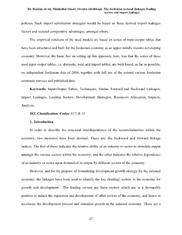 Keywords: Input-Output Tables, Techniques, Jordan, Forward and Backward Linkages,