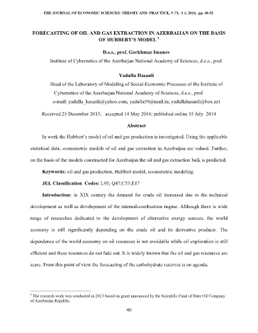 THE JOURNAL OF ECONOMIC SCIENCES: THEORY AND PRACTICE, V.71, # 1, 2014, pp. 40-52