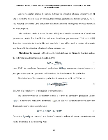 gas reserves. At the first time Hubbert estimated the oil and gas reserves of USA in 1956 [3].
