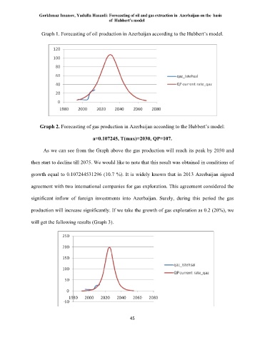 Graph 2. Forecasting of gas production in Azerbaijan according to the Hubbert’s model: