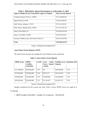 Table 3. BSD held by Alberta Environment, as of December 31, 2010