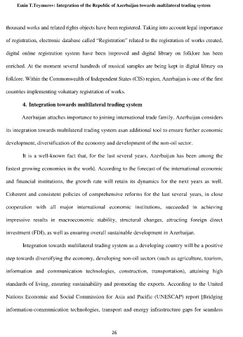 Emin T.Teymurov: Integration of the Republic of Azerbaijan towards multilateral trading system