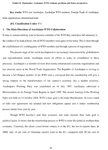 Key words: WTO and Azerbaijan, Azerbaijan WTO relations, Foreign Trade of Azerbaijan,