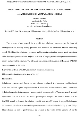 THE JOURNAL OF ECONOMIC SCIENCES: THEORY AND PRACTICE, V.71, # 2, 2014, pp. 66-80