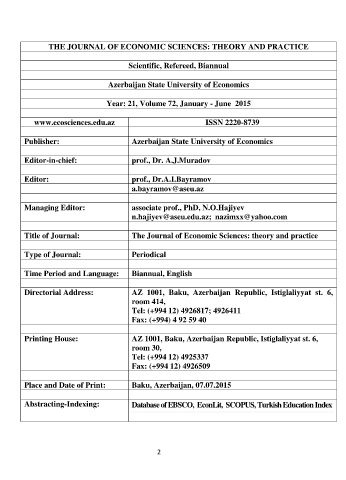 THE JOURNAL OF ECONOMIC SCIENCES: THEORY AND PRACTICE