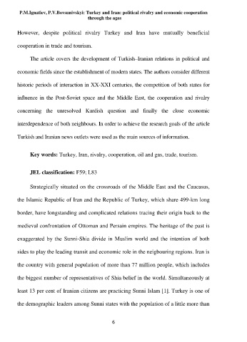 P.M.Ignatiev, P.V.Bovsunivskyi: Turkey and Iran: political rivalry and economic cooperation