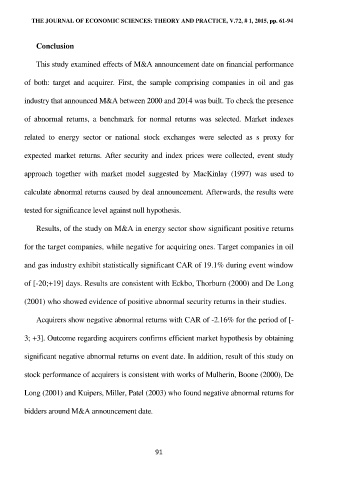 THE JOURNAL OF ECONOMIC SCIENCES: THEORY AND PRACTICE, V.72, # 1, 2015, pp. 61-94