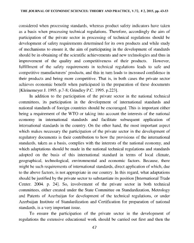 THE JOURNAL OF ECONOMIC SCIENCES: THEORY AND PRACTICE, V.72, # 2, 2015, pp. 43-53