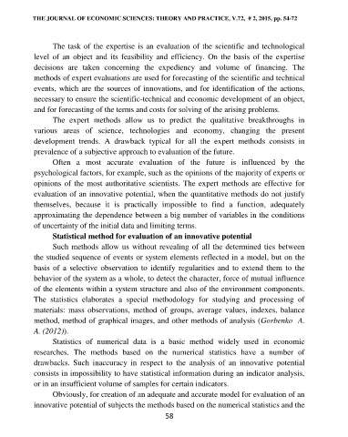 THE JOURNAL OF ECONOMIC SCIENCES: THEORY AND PRACTICE, V.72, # 2, 2015, pp. 54-72