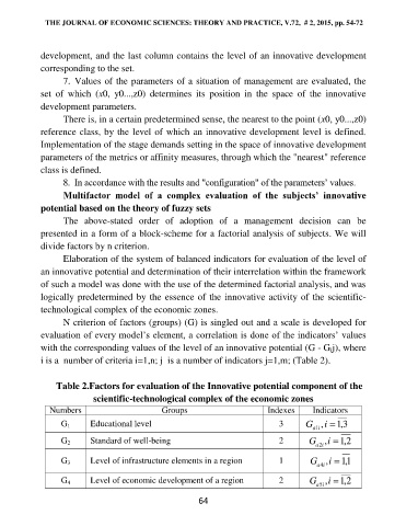 THE JOURNAL OF ECONOMIC SCIENCES: THEORY AND PRACTICE, V.72, # 2, 2015, pp. 54-72