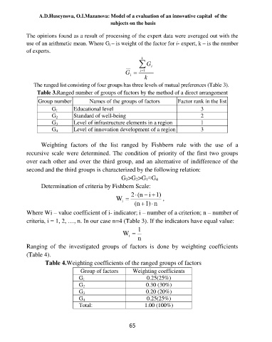 use of an arithmetic mean. Where G i – is weight of the factor for i- expert, k – is the number