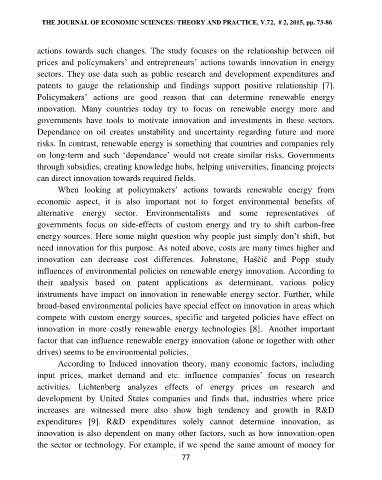 THE JOURNAL OF ECONOMIC SCIENCES: THEORY AND PRACTICE, V.72, # 2, 2015, pp. 73-86