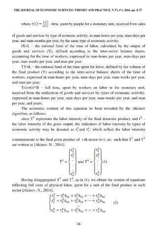 TY=L – the national fund of the time spent for labor, defined by the volume of
