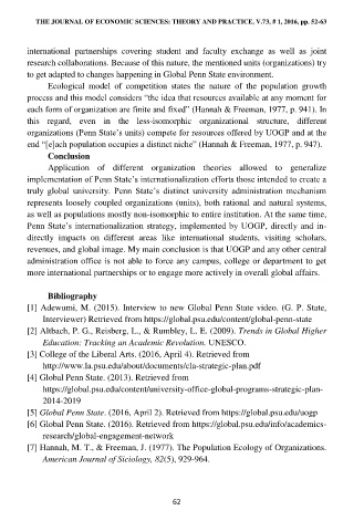 THE JOURNAL OF ECONOMIC SCIENCES: THEORY AND PRACTICE, V.73, # 1, 2016, pp. 52-63