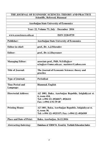 THE JOURNAL OF ECONOMIC SCIENCES: THEORY AND PRACTICE
