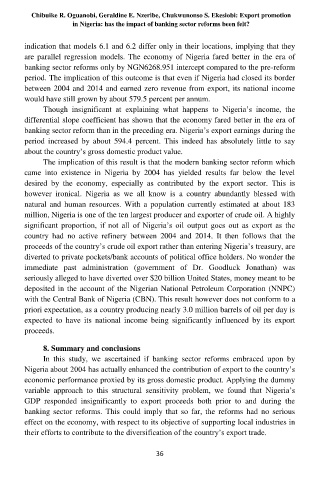 The implication of this result is that the modern banking sector reform which