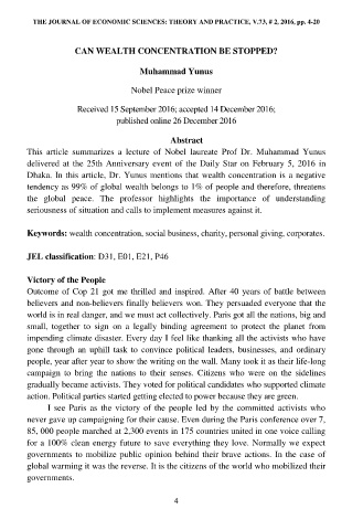 THE JOURNAL OF ECONOMIC SCIENCES: THEORY AND PRACTICE, V.73, # 2, 2016, pp. 4-20