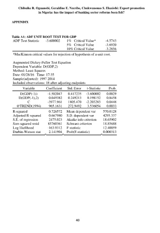 Table A1: ADF UNIT ROOT TEST FOR GDP