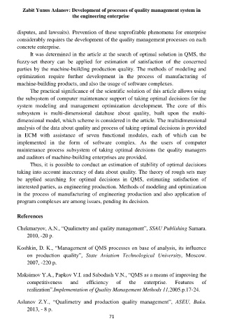 Aslanov Z.Y., “Qualimetry and production quality management”, ASEU, Baku.