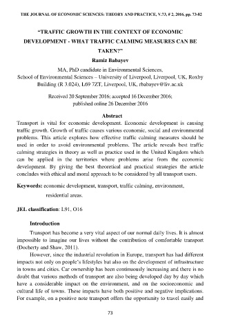 THE JOURNAL OF ECONOMIC SCIENCES: THEORY AND PRACTICE, V.73, # 2, 2016, pp. 73-82