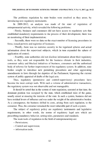 THE JOURNAL OF ECONOMIC SCIENCES: THEORY AND PRACTICE, V.74, # 1, 2017, pp. 10-22