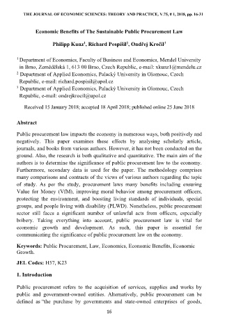 THE JOURNAL OF ECONOMIC SCIENCES: THEORY AND PRACTICE, V.75, # 1, 2018, pp. 16-31