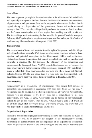 management. In this regard, Imam Ali (AS) regarded the transparency of issues as the