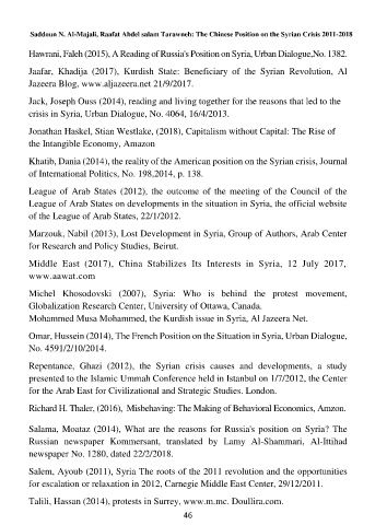 Saddoun N. Al-Majali, Raafat Abdel salam Tarawneh: The Chinese Position on the Syrian Crisis 2011-2018