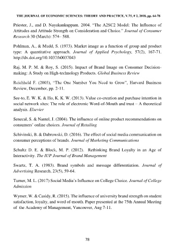 THE JOURNAL OF ECONOMIC SCIENCES: THEORY AND PRACTICE, V.75, # 2, 2018, pp. 64-78