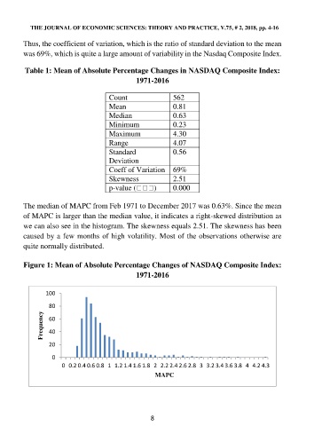 Table 1: Mean of Absolute Percentage Changes in NASDAQ Composite Index: