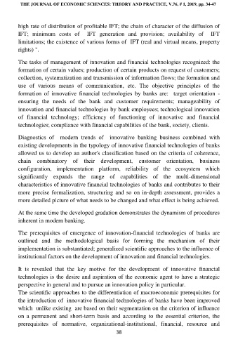 THE JOURNAL OF ECONOMIC SCIENCES: THEORY AND PRACTICE, V.76, # 1, 2019, pp. 34-47