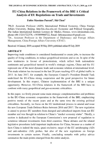 THE JOURNAL OF ECONOMIC SCIENCES: THEORY AND PRACTICE, V.76, # 1, 2019, pp. 4-19