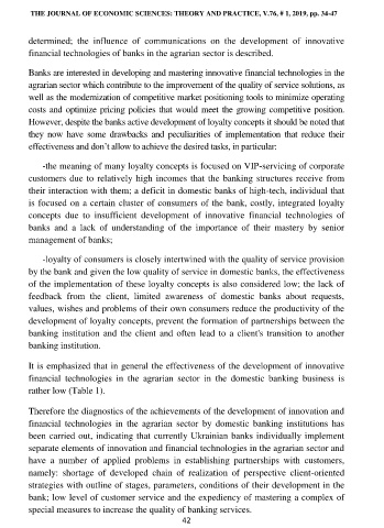 THE JOURNAL OF ECONOMIC SCIENCES: THEORY AND PRACTICE, V.76, # 1, 2019, pp. 34-47