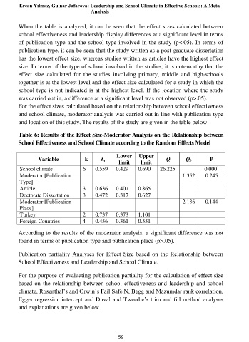 Table 6: Results of the Effect Size-Moderator Analysis on the Relationship between