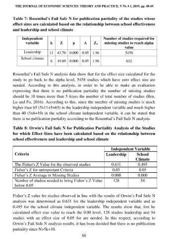 Table 7: Rosenthal’s Fail Safe N for publication partiality of the studies whose