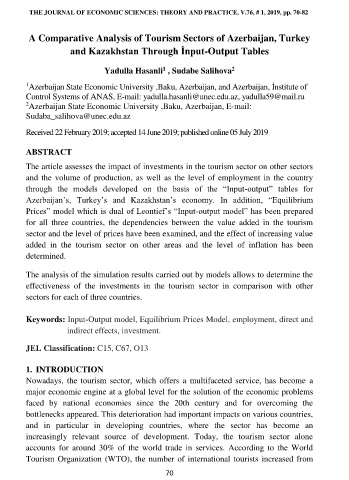 THE JOURNAL OF ECONOMIC SCIENCES: THEORY AND PRACTICE, V.76, # 1, 2019, pp. 70-82