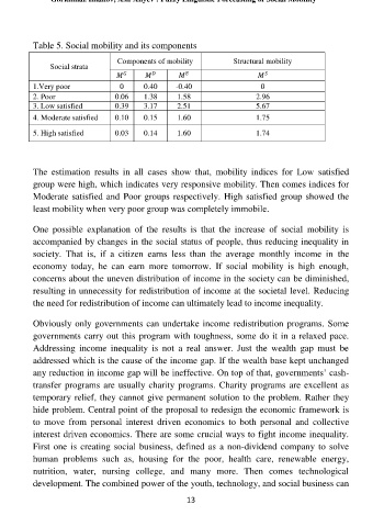 The estimation results in all cases show that, mobility indices for Low satisfied