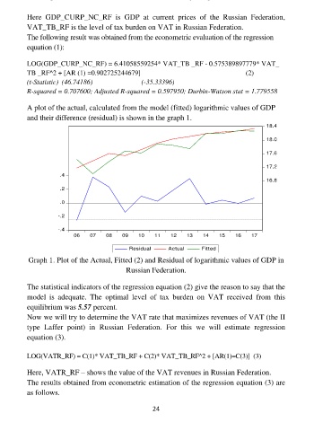 LOG(VATR_RF) = C(1)* VAT_TB_RF + C(2)* VAT_TB_RF^2 + [AR(1)=C(3)] (3)