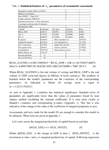 REAL_SAVING = 0.205133092015 * REAL_GDP + [AR (1) =0.754837146075,