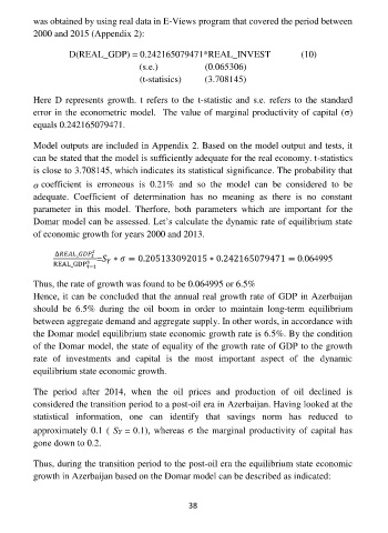 growth in Azerbaijan based on the Domar model can be described as indicated: