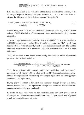 Having analyzed outcomes for Azerbaijan economy through Domar and Harrod