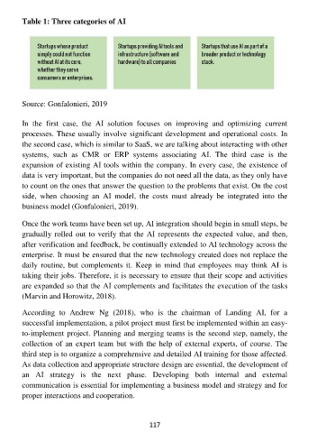 Table 1: Three categories of AI