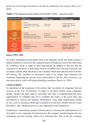 Table 2: The Hungarian labor market from 2020 to 2030 – expected results