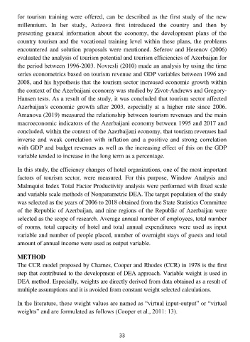 evaluated the analysis of tourism potential and tourism efficiencies of Azerbaijan for