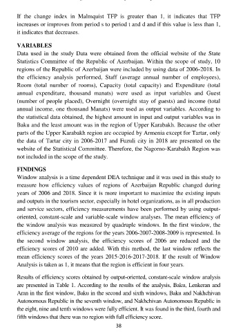 measure how efficiency values of regions of Azerbaijan Republic changed during