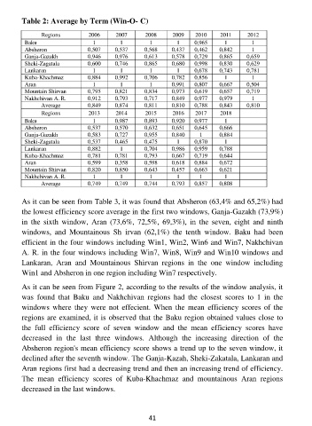 the lowest efficiency score average in the first two windows, Ganja-Gazakh (73,9%)