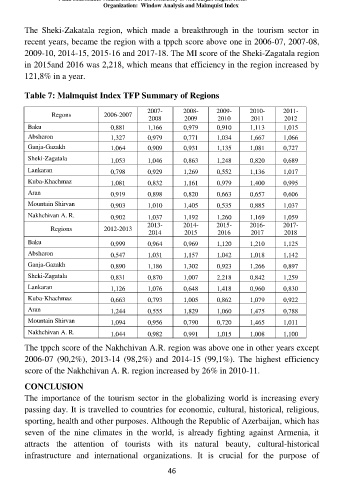 Table 7: Malmquist Index TFP Summary of Regions