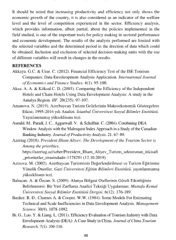 Babacan. A. & Özcan. S. (2009). Alanya Bölgesi Otellerinin Göreli Etkinliğinin