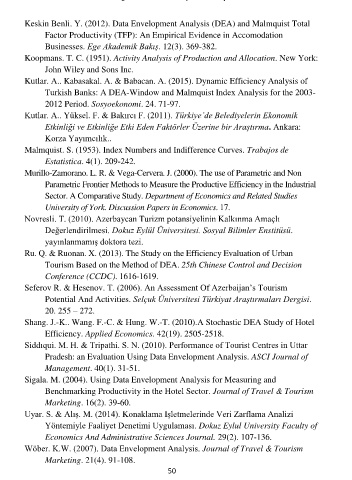 Uyar. S. & Alış. M. (2014). Konaklama Işletmelerinde Veri Zarflama Analizi