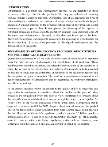 SUSTAINABILITY OF URBANIZATION PROCESSES: OPPORTUNITIES